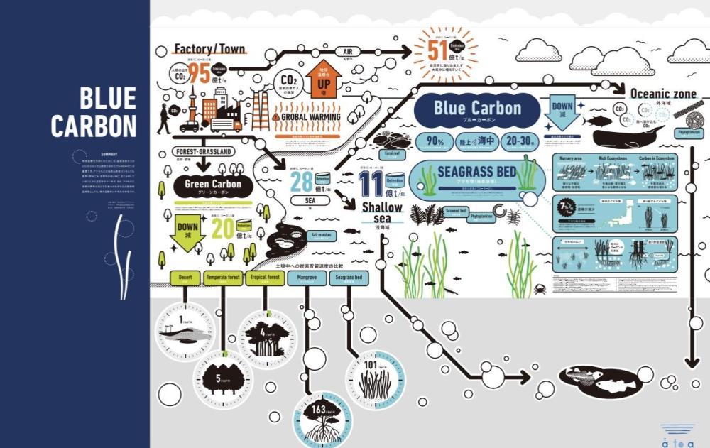 生物多様性の保全につながる「ブルーカーボン」による二酸化炭素吸収源対策の取り組みを壁面アートとして展示し、特設サイトも運営。